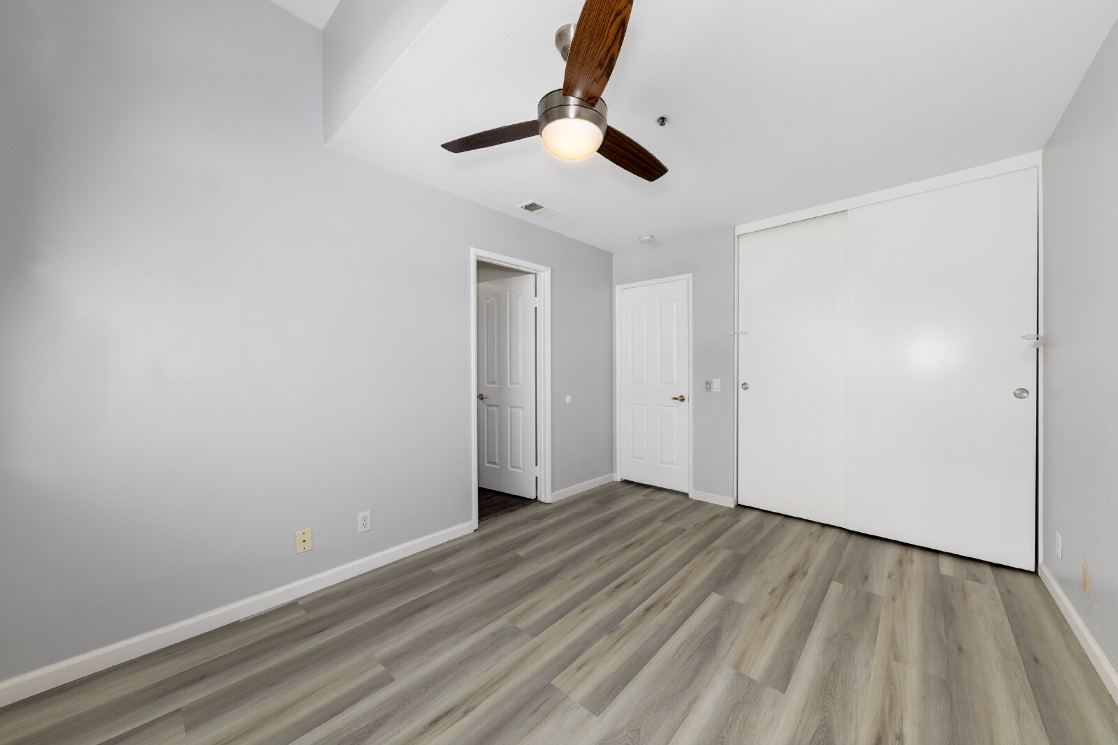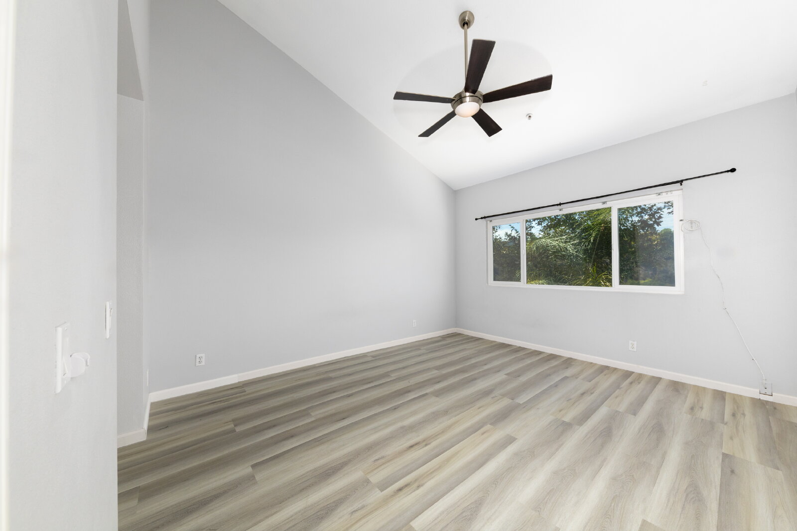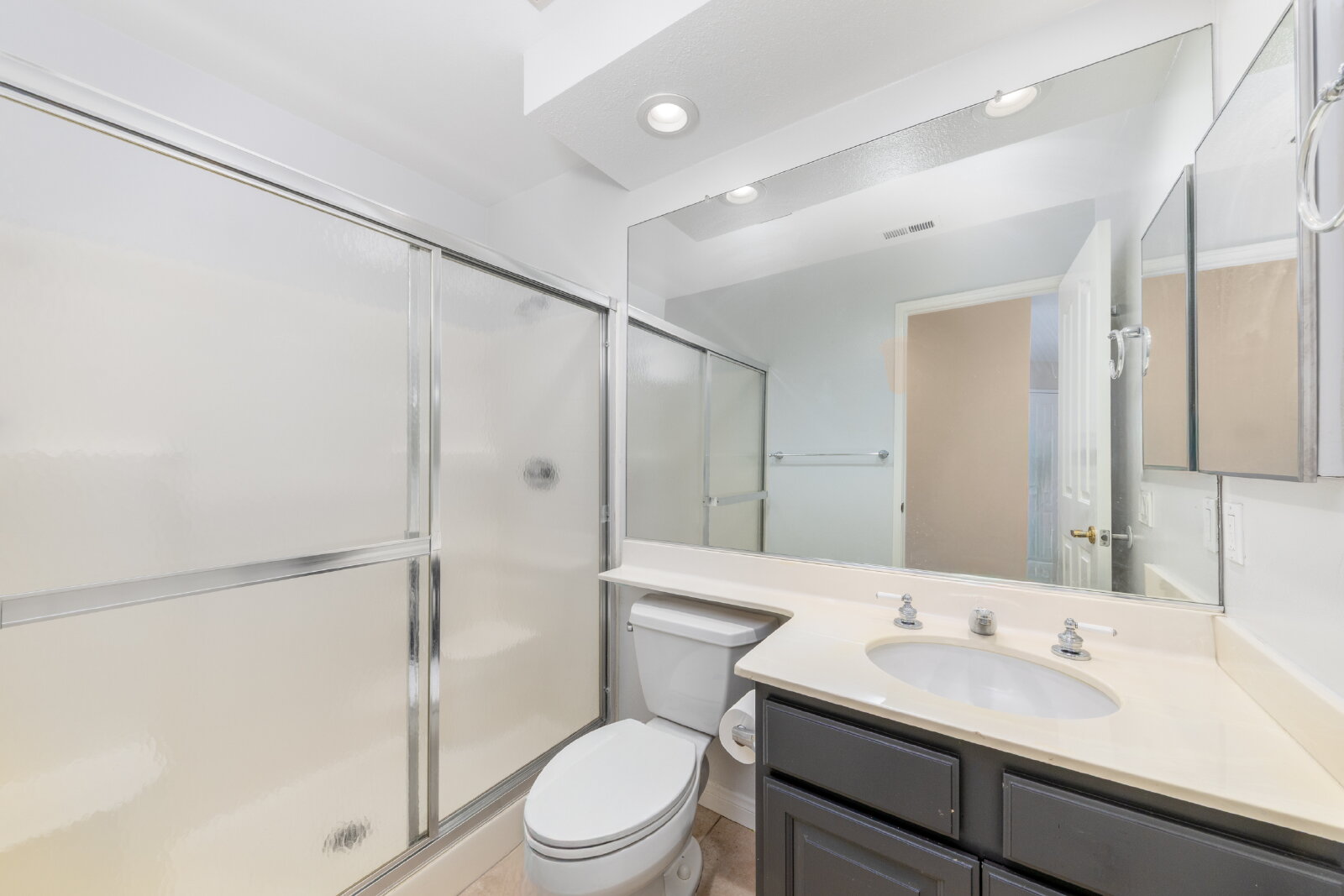 Two upstairs bedrooms each with their own en-suite bathrooms. Downstairs third bedroom or office space. Community pool and 2 car garage. Guest parking directly across from home.